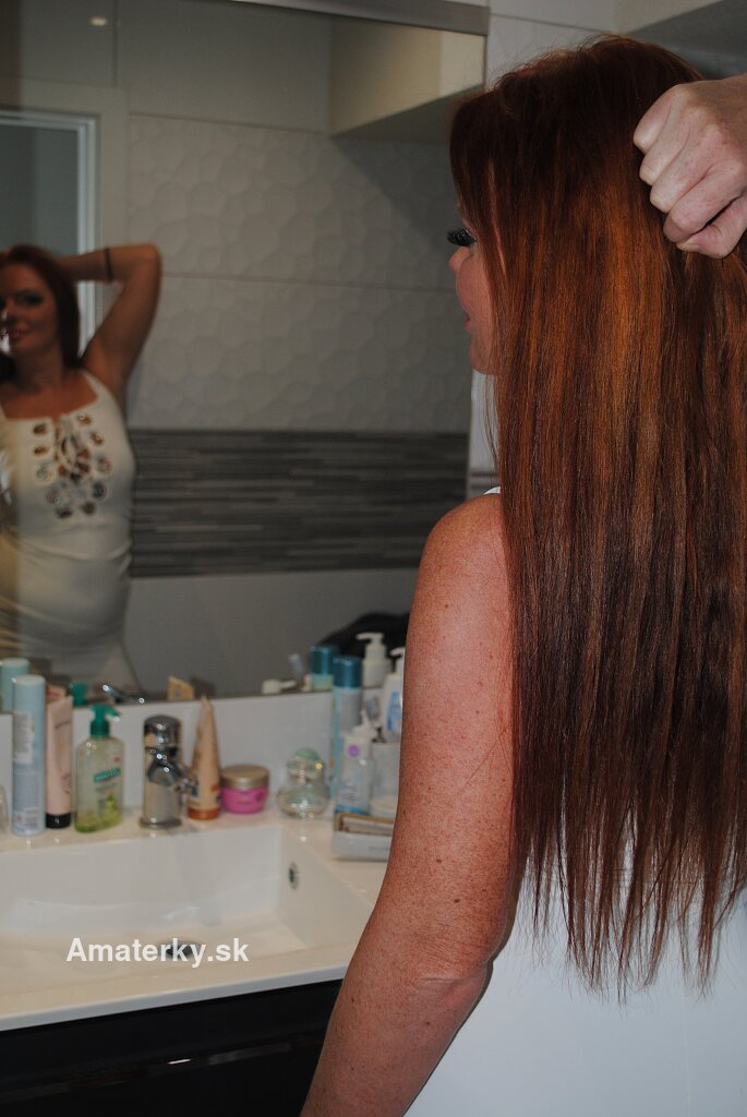 | Oči, vlasy | sivé oči, ryšavé vlasy |